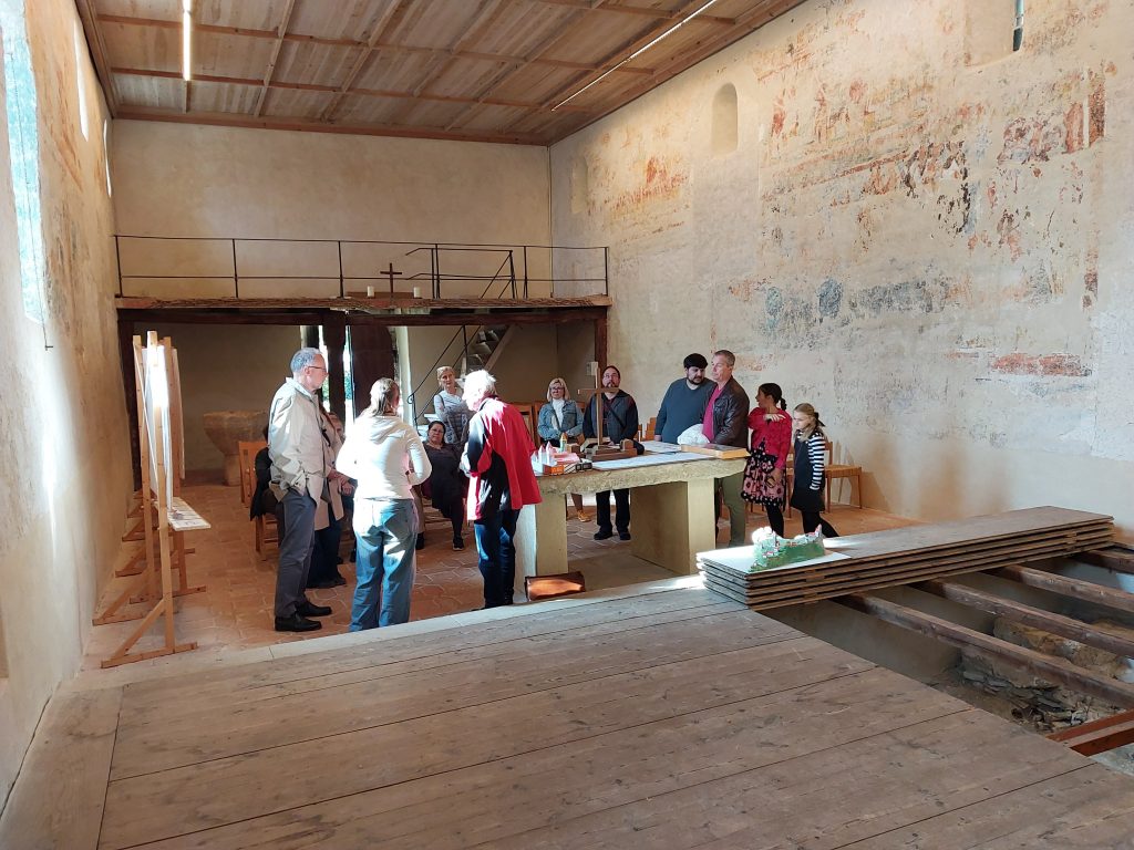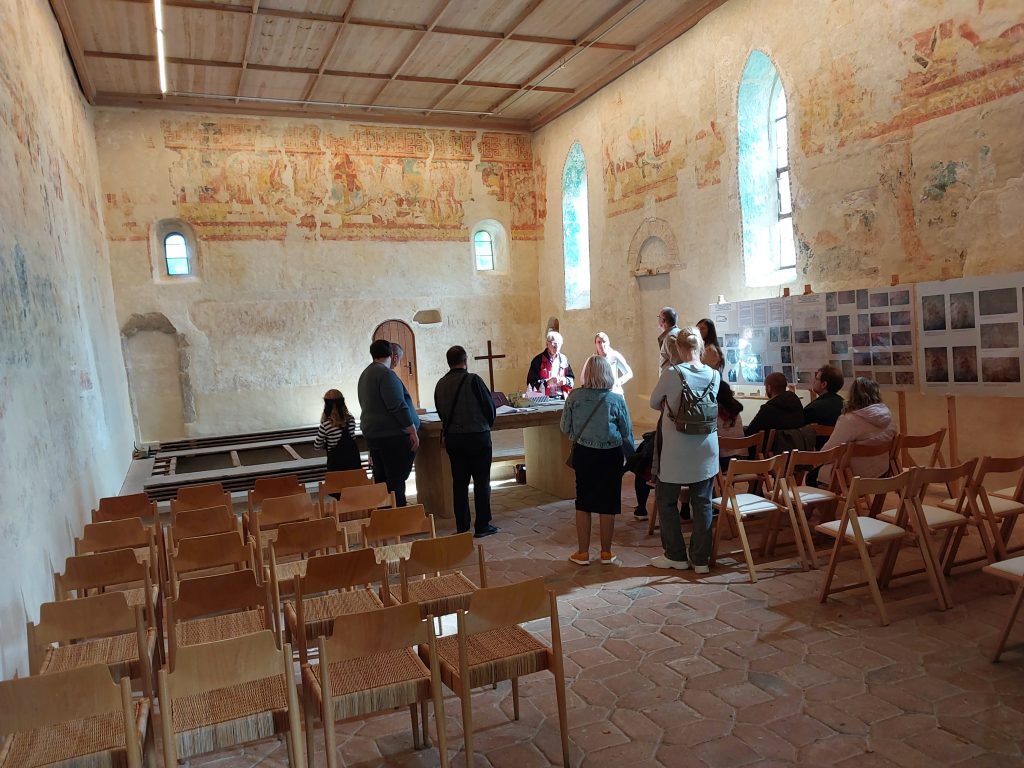 Nach der Liturgie und dem gemeinsamen Essen haben wir uns auf den Wag nach Burgfelden gemacht um die mehr als 1000 Jahre alte Kapelle zu besuchen. Herr Mayer hat uns von der Geschichte der Kapelle und die noch vorhandene Fresken erzählt.