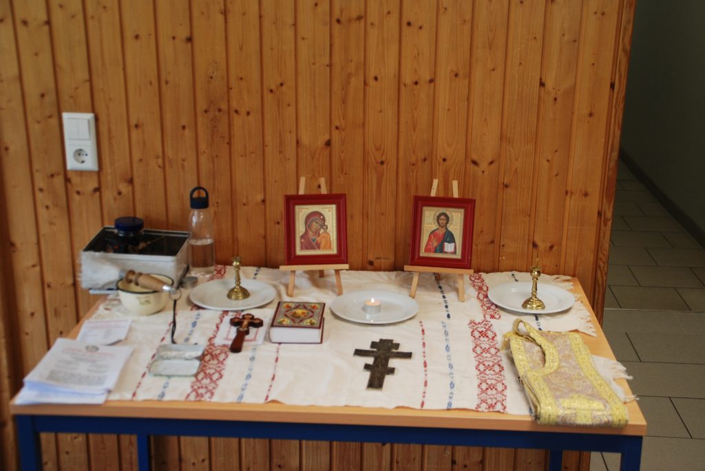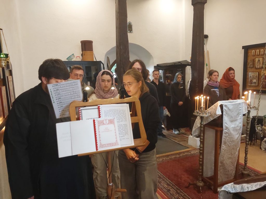 Am Sonntag vor der Liturgie gab V. Michael Buk eine Einführung in die Proskomedie – eine seltene Gelegenheit für diejenigen, die nicht im Altar dienen. Nach der Liturgie klang das Wochenende gemütlich aus, mit einer letzten gemeinsamen Mahlzeit und einer Besprechung des gesamten Wochenendes und natürlich dem gemeinsamen Hausputz.