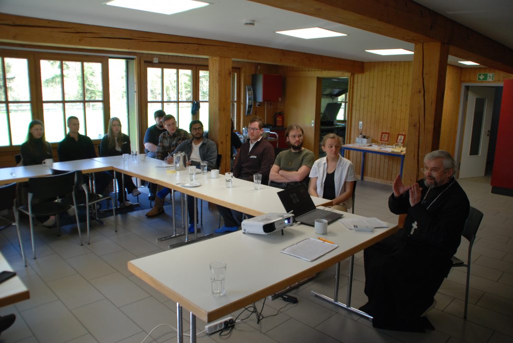 Priester Thomas Zmija hielt am Samstagmorgen einen Vortrag über die Bedeutung des Gebetes im orthodoxen Leben, der den Leitfaden für mehrere anschließende Workshops bildete. Der Hl. Apostel Paulus schreibt in seinem ersten Brief an die Thessalonicher den wohlbekannten Vers: „Betet ohne Unterlass!“ (1 Thess 5,17), und das Wochenende bot den jungen Erwachsenen die Gelegenheit, hemmungslos Fragen zu diesem wichtigen Thema stellen zu können. „Das Gebet vereint den Verstand mit dem Herzen und richtet sie auf Gott“, sagte V. Thomas in seinem Vortrag.