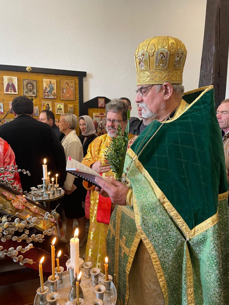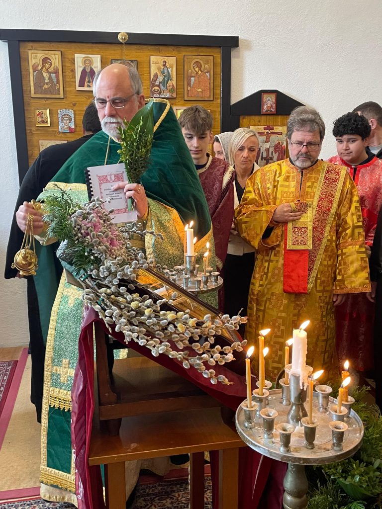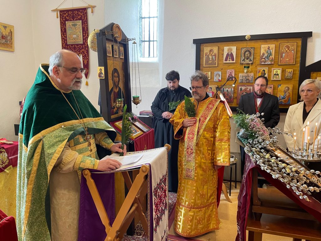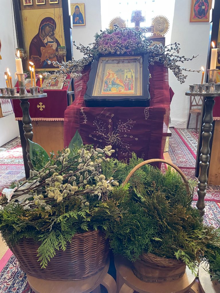 Um die allgemeine Auferstehung vor Deinem Leiden zu verbürgen, / hast Du, Christus Gott, den Lazarus von den Toten erweckt. / So tragen auch wir wie die Kinder Zeichen des Sieges / und rufen Dir, dem Sieger über den Tod: / Hosanna in der Höhe. / Gepriesen sei, der da kommt im Namen des Herrn.
