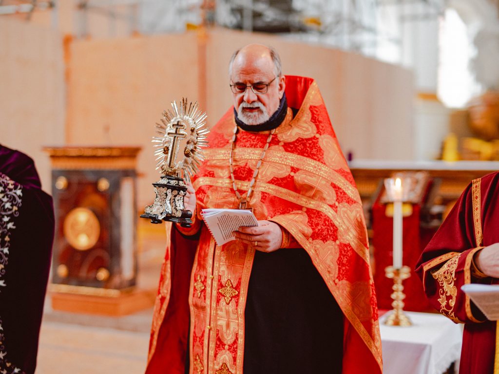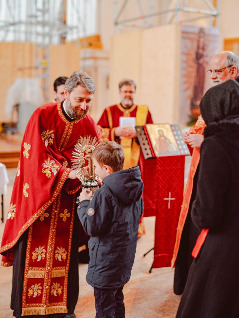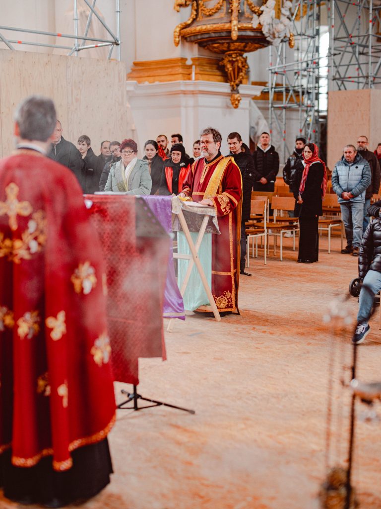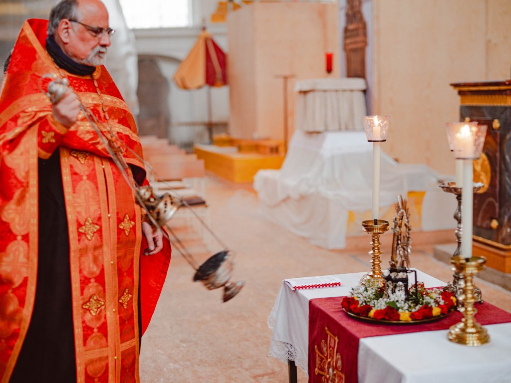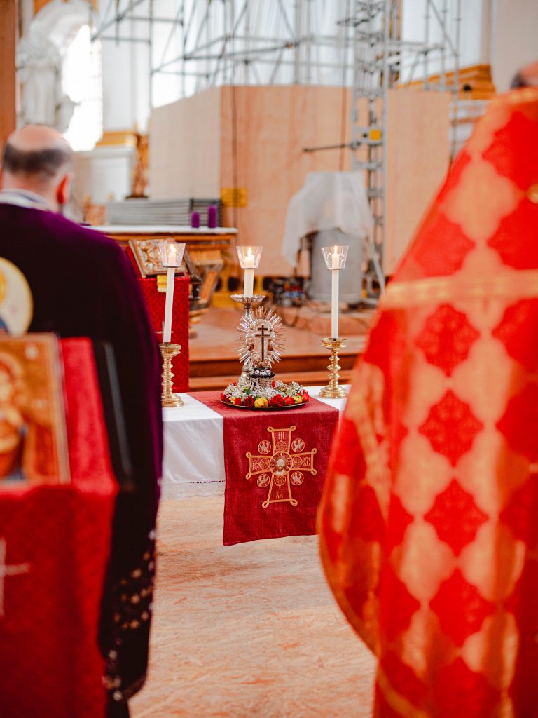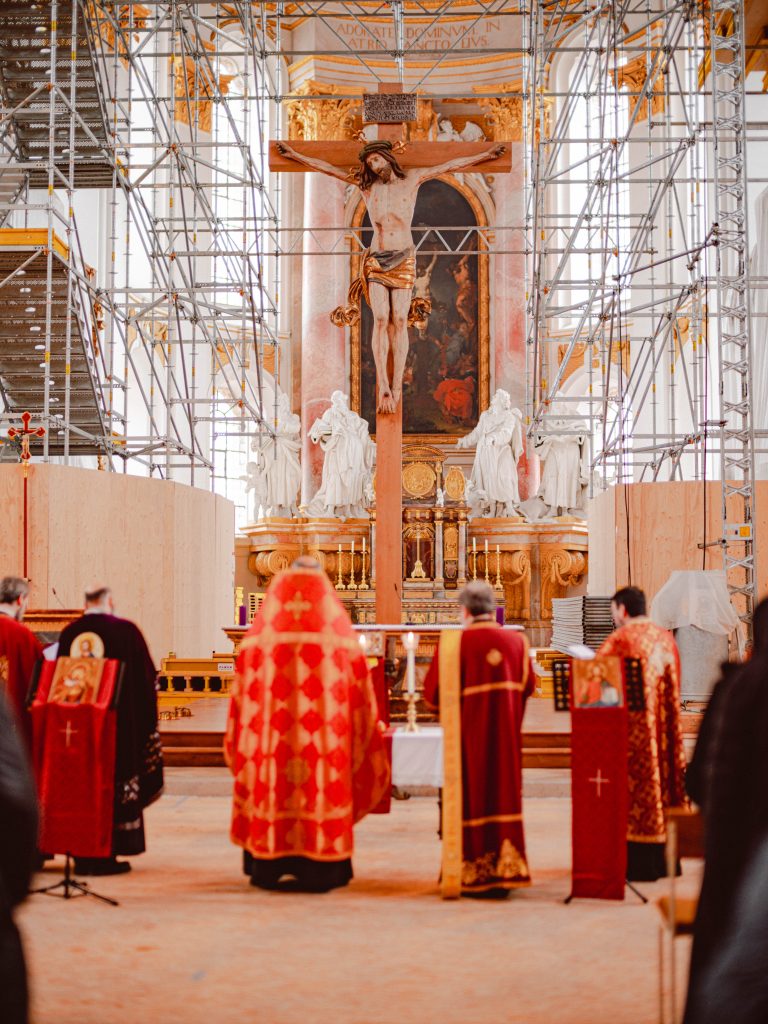 Am 15. März 2026, dem 3. Sonntag der großen Fastenzeit, dem Sonntag der Kreuzverehrung haben wir wieder zur Wallfahrt ins Kloster Wiblingen eingeladen. Seit 2018 findet diese Wallfahrt statt. Im Kloster Wiblingen haben wir die Möglichkeit einen Teil des lebensspenden Kreuzes unseres Herrn Jesus Christus zu verehren. Dieses Jahr wurde das heilige Kreuz von ca. 130 Gläubigen verehrt, die aus verschiedenen Gemeinden aus Baden-Württemberg teilgenommen haben.