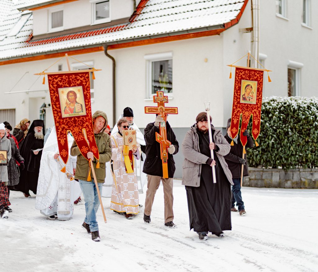 Als im Jordan du wurdest Herr getauft; * wurde geoffenbart die Anbetung der Dreiheit: * Des Vaters Stimme legte Zeugnis für Dich ab, * als er Dich nannte den geliebten Sohn * und der Geist in Gestalt einer Taube, * bekräftigte die Gewissheit des Wortes. * Erschienen bist du Christus, Gott,** und hast die Welt erleuchtet, Ehre sei Dir!